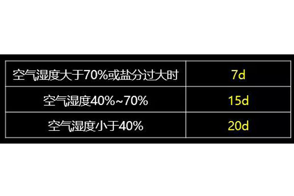 (4)穿束后至孔道灌漿完成應(yīng)控制在下列時(shí)間以內(nèi),否則應(yīng)對預(yù)應(yīng)力筋采取銹措施: